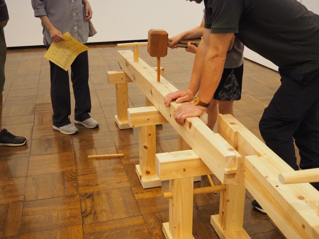 伝統的な大工技術の「木組み」で組み立てる木製遊具です。組む、遊ぶ、ばらす、という一連の体験を通して、楽しく学べるシーソーです。子供たちに大工の仕事の面白さを伝え、大工になりたい子を増やしたい!という思いから開発に至りました。いばらきデザインセレクション2025選定作品。